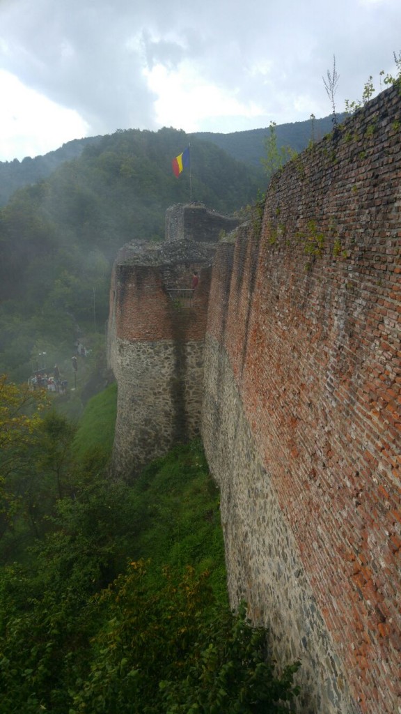 - Cea de-a doua oprire în traseul spre Transfăgărășan a fost la Cetatea Poenari, nu foarte departe de Curtea de Argeș. Inițial eu am zis că nici nu se pune problema să urcăm cele 1480 de trepte până la cetate cu Sophie după noi. Dar pentru că am pronunțat cuvântul cetate și Sophie l-a auzit a vrut musai să mergem. Iar bărbatul veșnic dornic de aventură i-a ținut isonul. Și dacă au vrut aventură, fix aventură am avut, căci în cele aproximativ 40 de minute cât am urcat a plouat întruna. Așa că pelerinele noi luate din Jumbo au fost perfecte pentru treaba asta.Nu, nu eram singurii cu copil după noi care urcau peste o mie de trepte pe ploaie. Era un chiot și-o veselie continuă. Mai mult s-au plâns ăștia mai mari (eu printre ei) decât ăștia mici.