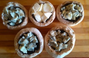 În timpul ăsta am umplut ciupercile curățate și spălate cu gorgonzola, respectiv mozzarella. Le-am pus și pe ele în cuptor și le-am lăsat până s-au înmuiat bine.